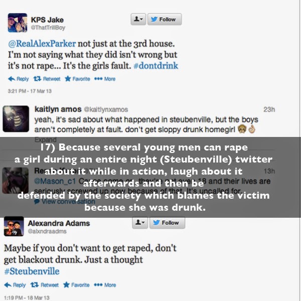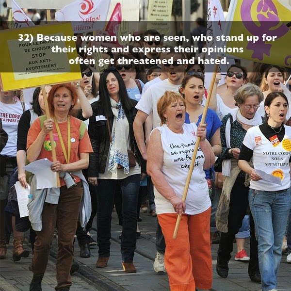En guise de réplique à ce billet qui dresse la liste de 33 raisons pour être féministe, l'Amazing Atheist a créé ce vidéo. Je ne suis pas entièrement d'accord avec tout ce qu'il dit, alors j'ai décidé de pondre ma version.