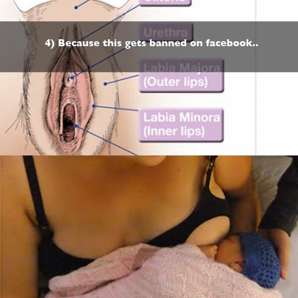 Pour ce qui est de l'allaitement, je me suis déjà exprimé là-dessus, je trouve un peu bizarre de vouloir partager une photo aussi intime avec des parfaits inconnus, mais je n'y vois personnellement rien de sexuel et il me semble idiot de bannir systématiquement ce type de photos. En fait, je suis d'avis que les femmes devraient avoir le droit d'exhiber leur poitrine partout où les hommes le font, comme à la plage par exemple. Mais que celles qui choisissent de le faire ne s'étonnent pas d'attirer les regards des hommes. Que ça vous plaise ou non, les hommes sont programmés pour être attirés et excités par des seins. C'est une réalité génétique de notre espèce, ce n'est pas un choix, que ça déplaise aux féministes n'y changera strictement rien.