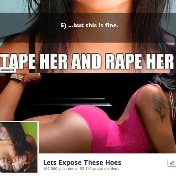 Cet argument me semble fallacieux et malhonnête. Facebook retire les pages offensantes ou qui font la promotion de la violence, à ce que je sache. Et même si FB ne le faisait pas, une page comme celle-là ne manquerait pas de choquer profondément la majorité des hommes, peu importe ce qu'en disent les féministes.