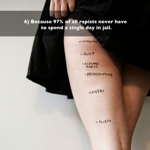 C'est vrai et c'est dégueulasse. Mais ce n'est pas comme ça au Québec, ni même en Occident, alors qu'on ne vienne pas me blâmer pour les comportements primitifs de gens qui vivent à l'autre bout du monde. D'ailleurs, j'aimerais souligner que, dans ces cultures, ce ne sont pas que des hommes qui punissent les victimes de viol, les autres femmes le font aussi. Et si la situation vous indigne à ce point, ben allez la combattre là où elle se trouve. Ce n'est pas une raison valable pour être féministe au Québec.