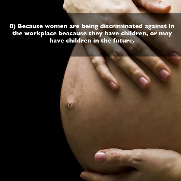 Il y a des lois pour prévenir la discrimination. Il est donc malhonnête de dire que la discrimination envers les femmes est largement acceptée et impunie. Si des injustices persistent, qu'on les dénonce et peu m'importe que les victimes soient des femmes ou des hommes. Et franchement, si j'avais eu la chance de pouvoir choisir entre élever mes enfants à la maison et travailler, j'aurais choisi l'option A sans hésiter. Je suis fier (et envieux) d'avoir permis à ma femme d'avoir cette chance inouïe. Comparée à ça, y'a pas une carrière au monde qui en vaut la peine.