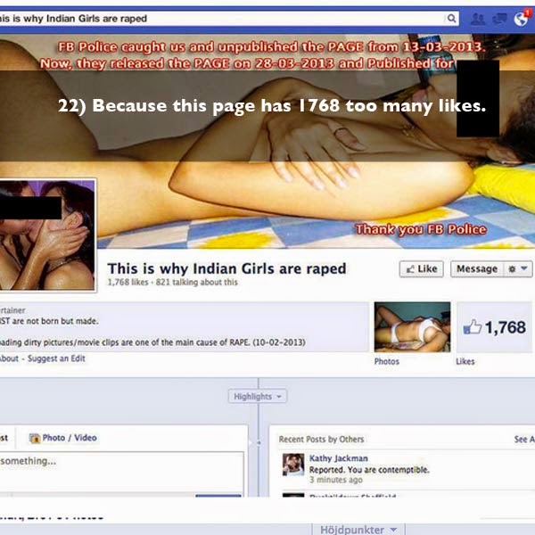 Sur les millions d'internautes dans le monde, il s'en est trouvé seulement 1768 pour aimer cette page. Voilà une belle preuve que la vaste majorité des hommes ne sont pas des violeurs en puissance et que ce type de comportement n'est pas acceptable dans notre société. Bref, ceci ne constitue pas une bonne raison pour être féministe.